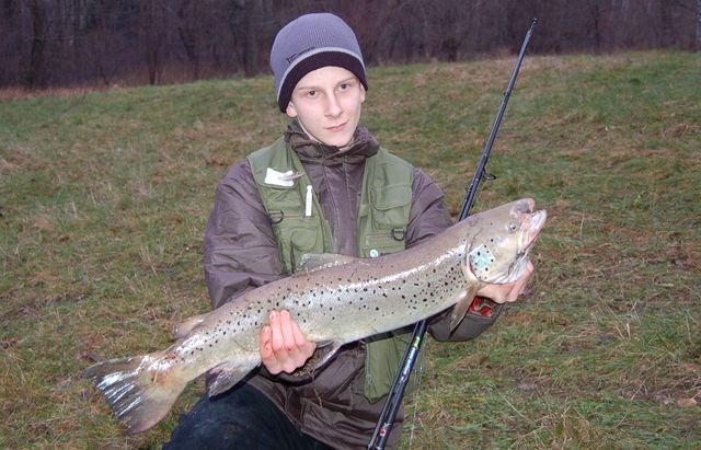 Mój pierwszy sezon... moja pierwsza troć.. .Samica troci, kelt, 80cm, 3,9kg Złowiona w rzece Redzie. :)