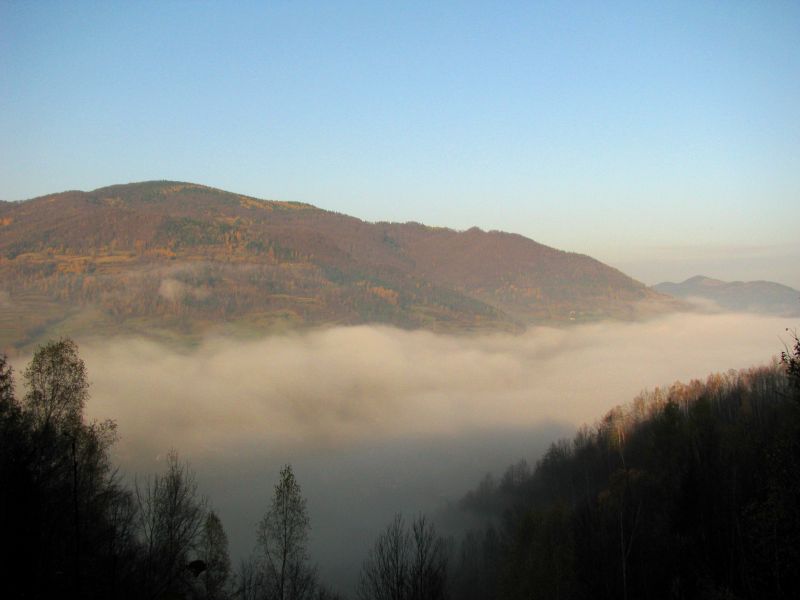Widok na Lubań. Dunajec we mgle.