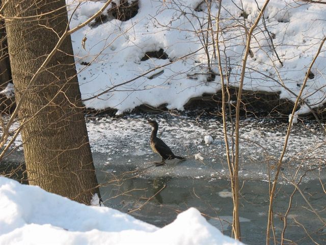 Ten osobnik widząc ryby pod taflą lodu długo nie dawał za wygraną. Na szczęście, w końcu zrezygnował. Lód okazał się za twardy.