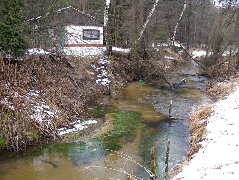 Pojawiaj± się pierwsze domki letniskowe. W tym miejscu jest jeden z najgłębszych dołków,jakie udało mi się zlokalizować-metr z kawałkiem.