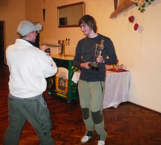 Tutaj kolega z drużyny Novy Jicin z nagrod± za największ± rybę z łowion± podczas zawodów. Gratulujemy ! Muszę dodać, że podczas zawodów zostały złowione 2 szczupaki o sporych rozmiarach, jeden sandacz ok. 60cm i 2 karpie.