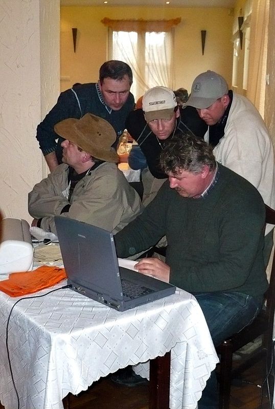 Sędziowie mocno pracuj±. Musz± na prawdę bardzo dokładnie przeliczać wszystkie punkty, aby nie wkradł się żaden bł±d. Na zdjęciu widoczny jest prezes Beskidzkiej Ligi Muchowej Andrzej Zawada.