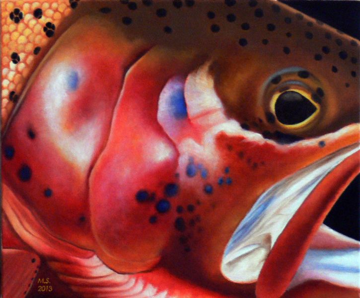 Technika olejna na płótnie o wymiarach 41x33 cm. Teraz nadszedł czas na kolejny temat: Pstr±g Potokowy.