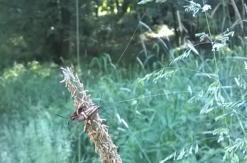 Kopulacja pary chru¶cików. Ciekawy wzór na skrzydełkach i bardzo długie anteny