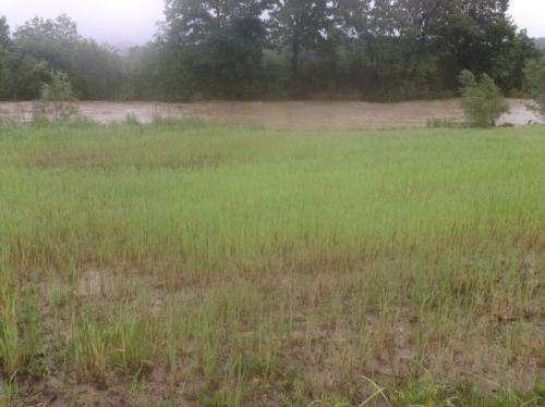 Równo z brzegami. Miejsce przy stawach powyżej jej uj¶cia do Sanu.