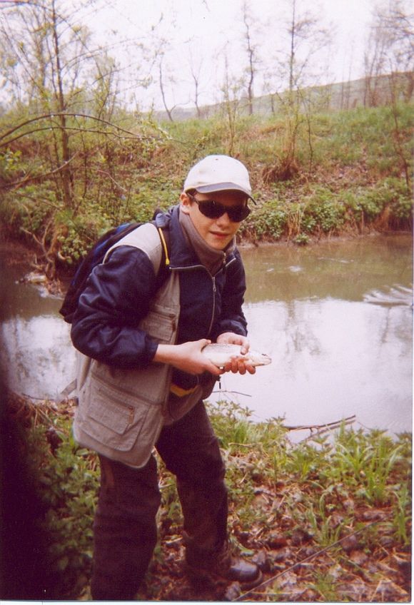 Mój pierwszy wymiarowy pstr±g w życiu. Miał 35 cm, złapany w Szreniawie na woblera. Wrócił do rzeki i mam nadzieje, że nadal pływa sobie i daje popalić tamtejszym kiełżykom