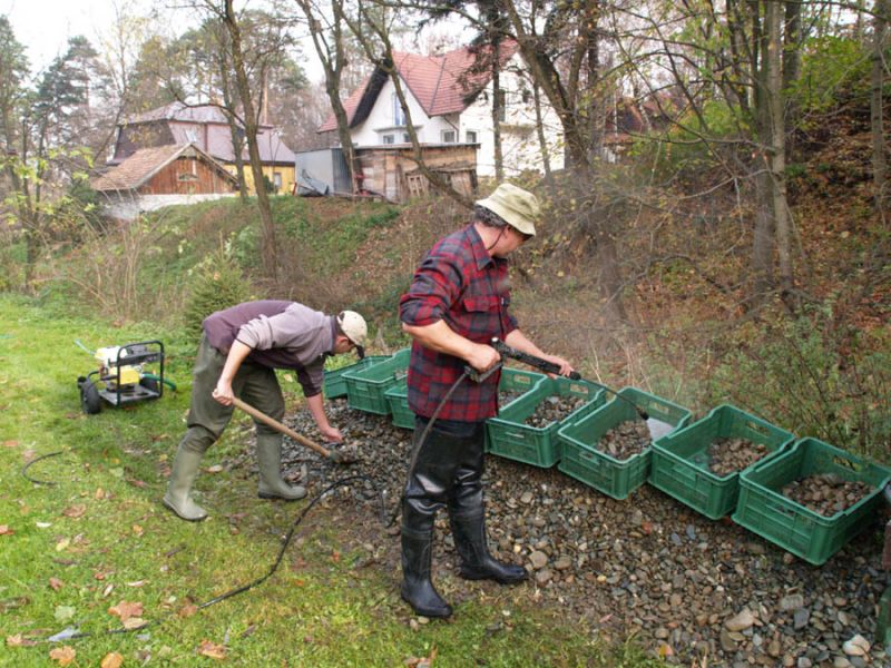 W miedzy czasie Piotrek i Kuba przygotowuj± skrzynki ze żwirem