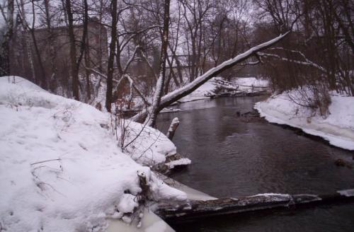 | Komentarz autora: | Okolice starego młyna widziane od drugiej strony. W oddali po lewej widać pozostały orginalny młyński budynek, a po prawej nowowybudowany bunek mieszkalny. Wła¶ciciel tym samym skradł rzece jedno z najefektowniejszych miejsc. Z tego wła¶nie powodu nie mogłem pokazać napływu Warty na młyn, gdyż posesja jest ogrodzona do samej rzeki. |