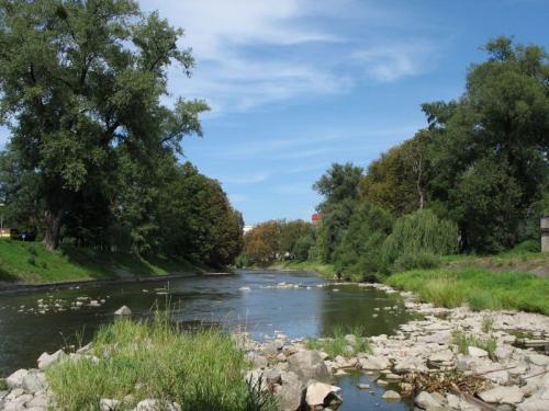 Olza pomiędzy mostami w Cieszynie.