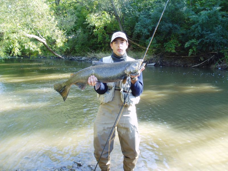 To inne ujecie ryby 90cm- ze zmeczonym lowca.Po raz pierwszy w tym sezonie zobaczylem na kolowrotku tylko podklad, chociaz uzywalem przyponu grubego na 0,28mm-ryba prula w dol rzeki jak torpeda.