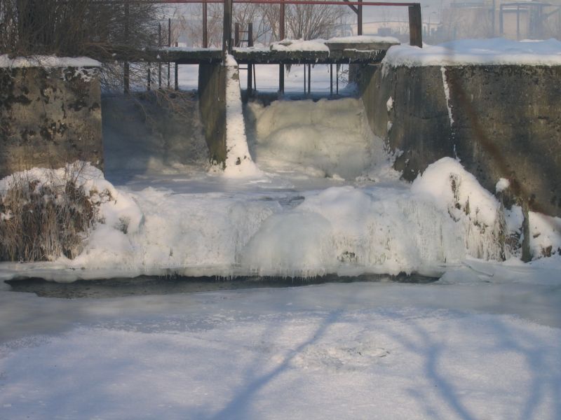 Szreniawa, rzeka w zimie , stopien wodny, temp -30 st.