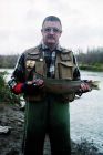 Na pocieszenie pozostaje fakt, że w pięć osób (w tym jeden naprawdę doświadczony muszkarz, który zresztą łowił na mistrzostwach świata w Polsce) złowiliśmy 3 ryby w 3 dni. Gość, o którym piszę Strato Cotsilinis to sympatyczny facet; ubrał, mnie i wyposażył w wszystko tzn. neoprenowe spodniobuty, kompletną wędkę (mój pierwszy Sage!) i muchy(?)! Czy muchy to nie wiem, ale jak słyszałem same organy nadzoru sportowego połowu ryb w NZ mają problem z interpretacją tej metody; zresztą także na ten temat z nowozelandzkimi kolegami rozmawiałem. O tym jednak za chwilę. Rzekę i ryby jednak widziałem i to wystarczyło. Mam nadzieję, że zdjęcia wyjdą i uda mi się je gdzieś zeskanować tak, abyście też mogli pooglądać.