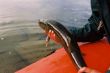 Tego dnia już nigdzie nie płyniemy. Zostajemy nieopodal na brzegu z nadzieją ze woda opadnie. Igor rusza w poszukiwaniu wioseł. My rozpalmy ognisko suszymy mokre rzeczy. Miejsce na obozowisko tym razem wybrała za nas natura. Wydawało by się, że nie złowimy tu ani jednej ryby. Sławek zbroi muchówką I rzuca ciągnie lipienia za lipieniem. Wieczorem postanawiam obrzucać duł, który znajdował się jakieś trzy kilometry powyżej. Łowię dwa tajmienie, ale nie duże , takie 3-5 kilo. Liczyliśmy że do rana rzeka opadnie, jednak po przebudzeniu okazało się że woda nie dość że nie opadła jeszcze poszła w górę o jakiś metr. Rzeka wyglądała groźnie . Tym razem wszyscy założyli kamizelki – wcześniej tylko Rosjanie zakładali. Rozpoczynamy. Woda jest brudna. Koledzy zaczęli powątpiewać ze da się coś złapać, ja jednak wierzyłem, że właśnie przy takiej wodzie można liczyć na prawdziwy okaz. Na potwierdzenie moich wróżb nie trzeba było czekać długo. Spotkanie z okazem miało miejsce już dwa kilometry poniżej obozowiska, w ujściu niewielkiego dopływu. Bohaterem całego zajścia był Sławek. Po zaparkowaniu pontonów zaczęliśmy rzucać z nadzieją, że coś uderzy. Ja szedłem w dół a Sławek I Robert obrzucali Ujście. Po chwili zniechęcony tym, że na dole nic nie bierze postanowiłem spróbować w ujściu. Właśnie zbliżałem się do Sławka jak ryba wzięła. Wędka wygięła się w pałąk a Sławek stara się ja ściągnąć, nawet to mu się udaje ma ją coraz bliżej wydaje się że tajmień opada z sił . Jednak było to tylko złudzenie tajmien chyba dopiero zauważył że coś go ciągnie. Obrócił się machnął parę razy ogonem , wystawiając przy tym swoje cielsko nad powierzchnię, kołowrotek zaterkotał I tyle go widzieliśmy. Odpiął się. Sławek stał zrezygnowany, nie dziwie się ryba była naprawdę olbrzymia. Trudno mi zgadywać jakiej była wielkości ale był to kolos. Sławek jednak był w stanie określić dokładnie jej rozmiary, posiada duże doświadczenie w określaniu wielkości ryby w wodzie, Jak był w Kazachstanie na sumach doszedł do takiej wprawy, że nie myli się więcej niż o dziesięć centymetrów. Ponieważ teoria Sławka jest bardzo interesująca przytoczę dwie podstawowe zasady. Zasada 1. Jak zatniesz rybę I nie czujesz ogona to ryba ma powyżej 1,5 m. Zasada 2 jak zatniesz I nic nie czujesz to na pewno ma ponad dwa metry. W tym przypadku Sławek nie czuł ogona, więc ryba miała przynajmniej półtora metra. Plus minus dziesięć centymetrów, ale z relacji Sławka wynikało, że raczej plus. Sławek odpoczywał po walce a ja próbowałem dalej, złowiłem jeszcze jednego tajmienia miał może ze sześć kilo, ale przy przeżyciach z jakimi Sławek zetknął się przed chwilą nie robiło najmniejszego wrażenia.
