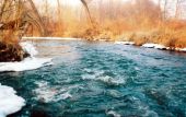 W końcu pierwszy próg. Wspaniała miejscówka, zwłaszcza dla zwolenników nimfy. Lipienie jednak dobrze potrafią odróżniać imitację od naturalnej larwy owada. Przede wszystkim mam tu na myśli prowadzenie muchy. Miejsce to może obdarzyć nas także kleniem, a miałem okazję złowić tutaj także okonie.