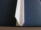 Krok 2 Pierwsza czynnoscia jest przymocowynie naszego paska samoprzylepnego papieru do jakiejs podstawki ( gruby zeszyt czy jakies pudelko ) tak aby odstawalo na kilka centymetrow od powierzchni stolu. Nalezy uformowac z niego korytko, tak aby jego dno mialo ok 0,5 cm szerokosci a jeden z bokow byl nizszy od drogiego i nie przekraczal ok 2 cm wysokosci. To ulatwi nam pozniej prace. |
