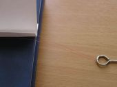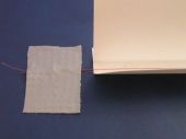 Krok 4 Druga strone drucika przewlekamy przez nasze „oczko” (drut, szydelko itp) i mocujemy prowizorycznie po drogiej stronie naszego korytka (mozna przycisnac czymkolwiek). Po naciagnieciu drucika, jego jedno wlokno powinno przechodzic w miare centralnie wzdluz, na dnie korytka a jego drugie wlokno umieszczamy poza korytkiem z tej strony gdzie jest nizszy bok. |