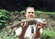 Ja postanowiłem spróbować nimfy, niestety bez żadnych efektów. Gdy już powoli baterie naładowane wczorajszą rozmową z Wasią zaczęły się wyczerpywać. Dobiegł mnie pełen euforii krzyk Jarka Jest!!! I chociaż zazdrość mnie zjadała odpowiedziałem spokojnie - to fajnie. W momencie gdy zobaczyłem jak Jarek zbliża się do mnie ze złowioną rybą pomyślałem - skurkowany chce podkreślić swój triumf. Jednak jak był już dość blisko zauważyłem zafrasofanie na jego twarzy. Takim samym głosem powiedział - wiesz coś złapałem ale nie wiem co to jest. Wyciągnął w moim kierunku rękę na której leżała przepiękna 7 cm strzebla. Momentalnie okrzyknęliśmy Jarka pogromcą znad Czeremoszu, królem strzebli. Mimo iż pierwsi już mieli sukcesy ja I Bogdan wciąż byliśmy bez ryby. Po godzinie bezsilnych prób złapania czegoś konkretnego postanowiłem zmienić zestaw na coś efektywniejszego w tej wodzie (coś na strzeble). Pewnie Zakończylibyśmy dzień trofeum w postaci strzebli gdyby nie Bogdan, który stwierdził "koniec srania po krzakach trzeba wziąć się do roboty".Tknął tymi słowami w nas nowego ducha, a na efekty długo nie trzeba był długo czekać , po chwili padł pierwszy pstrąg. Złapał go Bogdan, a miał nie co poniżej 30 cm. Ja swojego na suchą złapałem niedługo potem, był podobnych rozmiarów. Najdłużej na na spotkanie z kropkowańcem musiał czekać Jarek. Ale I on dostąpił tego. Tego dnia złapaliśmy kilkanaście pstrągów wszystkie w przedziale 25-30 cm. Późnym wieczorem gdy wracaliśmy na kwaterę byliśmy rozpaleni, zachwyceni wodą no I głodni. Na miejscu czekała już na nas gorąca kolacja. Zgodnie z zamówieniem regionalna - mamałyga gotowana na śmietanie posypana bryndzą. Warto tego spróbować szczególnie ze względów etnograficznych. Po kolacji wszyscy położyli się szybko spać. Na następny dzień mieliśmy plan obłowienia Białego Czeremoszu. Gdy pozostali smacznie chrapali (szczególnie jeden) ja wyciągałem jedną głowacicę za drugą I tak aż do świtu gdy nasza gospodyni obudziła nas na regionalne śniadanie mamałyga gotowana na wodzie I jajecznica. Tego poranka zgodnie z planem pojechaliśmy na rybałke na Biały Czeremosz. Zatrzymaliśmy się wysoko w górze rzeki, tuż nad obiecującym dołkiem. Niestety w momencie gdy przebraliśmy się I stanęliśmy gotowi do pogromu nad Czeremoszem zaczęło podać, następnie deszcz przemienił się w ulewę, a po chwili woda w rzece z lekko traconej przerodziła się w kawę z mlekiem. Nie pozostało nam nic innego jak opuścić Biały Czeremosz. Wróciliśmy na stare śmieci czyli na Czarny. I tutaj aura specjalnie nie dopisywała, więc bez entuzjazmu ubrałem się w wodery. Zeszliśmy nad rzekę, ja stanąłem w połowie rynny znajdującej się w tym miejscu. Chyba za 10 rzutem poczułem przytrzymanie. Wiedziałem już co to jest, w końcu śniłem o niej od dwóch nocy. Pewności jednak nabrałem dopiero wtedy gdy wypłynęła pod powierzchnie ukazując swoje czerwonawe cielsko. Hol nie trwał zbyt długo, jednak był fascynujący. Zrobiliśmy sobie kilka zdjęć razem I zwróciłem ją rzecze, niech ma potomstwo, niech jeszcze ktoś inny cieszy się z jej złapania. Była piękna, może nie największa, ale za to była to ryba, która przyszła na świat w sposób naturalny w dorzeczu Dunaju. W czasie holu na brzegu pojawiła się grupka chłopców, którzy z euforia krzyczeli glawacz, glawacz!! Jakie było ich zdziwienie gdy po chwili wypuściłem rybę do wody. Jeden z nich mało nie wskoczył do rzeki za odpływającą rybą. Byli naprawdę zdezorientowani moim czynem, ale nie należy im się specjalnie dziwić. U nas taki czyn jest różnie odbierany, a co dopiero na Ukrainie gdzie wędkuje się w dużej mierze dla celów konsumpcyjnych. Jakieś półgodziny po wyciągnięciu przeze mnie głowacicy. Usłyszeliśmy krzyk Jarka jest! Zaciął na streamera ładnego pstrąga takiego około 40 cm. Po chwili woda ponownie przybrała kolor kakao I musieliśmy poszukać czystszej wody wyżej. Wszyscy znowu spotkaliśmy Czeremoskie kropkowańce, jednakże pogoda coraz bardzie załamywała się. Następnego dnia od rana woda płynęła dość mocno trącona. Mimo to około 8 złapaliśmy po pstrągu. A ja miałem uderzenie dużej ryby, która niestety zerwała żyłkę, jednak w tym momencie wyszła pod powierzchnię I zobaczyłem ją oceniałem ją na jakieś 50-60.