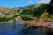 Mohaka river, znajduje się po wschodniej stronie, środkowej części Północnej Wyspy Nowej Zelandii. Dokładne informacje geograficzne pominę, powiem tylko, że, mimo iż płynie ona w większości przez niedostępne i dziewicze tereny górskie dojazd do poznanego przeze mnie odcinka środkowego jest stosunkowo prosty. Dla porządku dodam też, że jest to też najbardziej finansowo dostępny odcinek – kazdy moze sie tu dostac (wystarczy auto 4WD; niekoniecznie helikopter!) i polowic. Słynny górny odcinek opanowany jest przez amerykańskich przewodników wędkarskich, a dolny, przełomowy segment wymaga transportu śmigłowcowego. Te kilka odcinków, które miałem okazję zwiedzić dwukrotnie (w listopadzie widziałem dodatkowo jeszcze jeden, który obecnie leży na terenie kupionym niedawno przez pewnego Amerykanina, o którym poźniej) stosunkowo łatwo odnaleźć jest na mapach, a i dojazd do nich nie jest trudny. Obejmują fragment rzeki przed i za mostem na drodze głównej nr 5: Napier – Taupo.